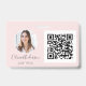 Professional Elegant and Modern Minimalist Photo Blush Pink - Rose Gold Girly Cute QR Code Business Card Name Badge that allows you to include headshot photo or picture, Name, Job Title contact information.