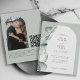 Elegant trendy sage green budget affordable all in one engagement PHOTO wedding invitation with bohemian botanical arch, simple typography script and your (automatically generated) QR CODE to website, online RSVP, accommodation, direction details. ++++++++++++++++++++++ PLEASE READ THIS BEFORE PURCHASING! This is a budget affordable wedding card printed on a paper sheet (each sheet has one card). ++++ For the best rapport price-quality, our advice is to choose the Semi-Gloss paper type (it is thick enough to be used for stationery) ++++ If you need envelopes, choose the ENVELOPE OPTION. +++ Double-check all the information and spelling of your text because you will receive exactly what you see - no one else will check anything before printing. ++++ This card is designed for size 4.5" x 5.6". In the case you choose another size of the card and text goes outside page, everything needs to be fixed before adding the product to cart. Please ask Live Design Service for help.