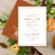 features template text fields pre-designed to allow couples to add the parents' names easily. On the back of the invitation we have included a QR Code for RSVP. We have taken care to design this invitation on Zazzle's Matte paper stock—elegant and understated, it suits softer, more subtle colors, and has an eggshell texture for a natural feel, and an uncoated matte finish. This cardstock is eco-friendly, made using 100% wind powered electricity, and is made and printed in the USA by Mohawk Fine Paper. (Elevate the design by choosing a felt or laid paper cardstock for a more luxurious finish.) This card will reflect well on who you are as a couple, and set the tone for a beautiful wedding. For matching products, view our Zazzle Collection here: https://www.zazzle.com/collections/elegant_burnt_orange_classic_script_wedding-119586740302574987 Copyright Anastasia Surridge for Elegant Invites, all rights reserved.