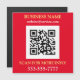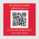 Personalise with your QR Code in any dark colour. Add your Business Name, website, message and phone in yellow and white text on red background.
