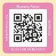 Personalise this sticker with your QR Code in any colour, but be sure it is dark enough to scan. Business Name, website and number code are in white text with pink border. Click “Edit Using Design Tool” to change colours and type styles.