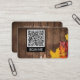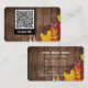 QR Code Business Card with Autumn Leaves On Wood
