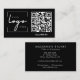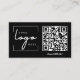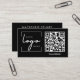 QR Code Business Logo Black Modern Professional Business Card. Elevate your professional presence with our Customisable Business Card in black and white, designed for modern professionals who value simplicity and functionality. This sleek, minimalistic card with a chic black background showcases your contact information and incorporates a QR code for seamless connectivity to your online profiles or portfolio.