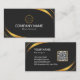 Personalised modern black and gold business card design features your business logo and custom QR code on the back. Add your name, company name/title, logo (photo or other graphic) and contact information. You can customise the text size, font and colour to suit your own personal preference. Input a URL address to create a scannable QR code linked to your website, social media profiles, or any other platform.