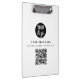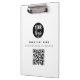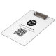 A modern minimalist personalised business clipboard with business logo and QR code. Personalise with your logo, QR code and details to create your own unique elegant black and white business clipboard.