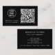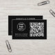 This modern QR Code and company logo black business card is easily customisable with your QR code, logo, and contact information.