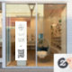 A simple custom grey and white QR code business vinyl window cling decal sign template in a modern minimalist style which can be easily updated with your company logo, QR code, and custom text, eg. Scan Me, Scan to Sign Up, Scan to Connect with us!