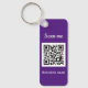 QR Code Business Logo, professional, custom keychain. Purple modern, simple design. Perfect for your company, business. Promotional keychains.