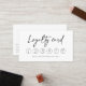 Modern calligraphy loyalty card for five visits or services. Customise these cards with your QR code, business logo and contact info. Click “customise further” to change the background colour to match your business’ colour scheme.