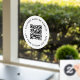 A simple custom white QR code window cling template in a modern minimalist style which can be easily updated with your QR code, business name or website and custom text, eg. scan me to...