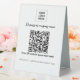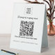 Simple, elegant, and minimalist design. This tabletop is perfect to promote your business, you can customise the logo, the QR code, and the business name, you also have two customisable texts one for the QR code message, and another one to add additional information.
