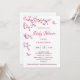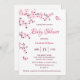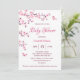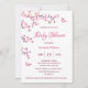 This cute baby shower invitation features pretty pink cherry blossoms and a cute butterfly on a white background and an elegant calligraphic script.
