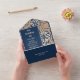 QR Code Classic Blue Art Nouveau Wedding All In One Invitation