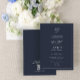 QR Code Classic Navy Blue Script Monogram Wedding Invitation