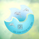 An abstract form that symbolises a wave. In the wave are silver jumping dolphins and an Aloha text. With a scannable qr code.