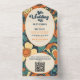 QR Code Colourful Groovy Retro 70s Floral Wedding All In One Invitation