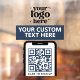 Elevate your storefront with this modern minimalist navy blue vinyl window cling, designed to showcase your company logo and QR code with sleek sophistication. Personalise it with your business name, phone number, and logo for a polished, professional look that enhances your branding and provides quick access to your services or website.