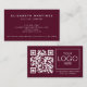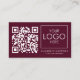 Our burgundy QR Code Company Logo Professional Front and Back Business Card—a sophisticated and innovative solution for modern businesses. With a delicate burgundy hue and your custom QR code prominently displayed, this card effortlessly combines elegance and functionality. Showcase your company logo on both sides, making a lasting impression on potential clients. Whether you're a seasoned professional or just starting out, this business card is perfect for leaving a memorable mark in a digital age. Elevate your brand and networking game with this stylish and tech-savvy business card today.