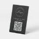 Professional modern QR code contactless menu logo black pedestal sign. Custom black business template in a modern minimalist style which can be easily updated with your company logo, QR code and custom text.