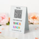 Custom Colours and Font - Table Tent Sign with Your QR Code and Logo Text Info Promotional Business Personalised Table Tent Signs - Add Your QR Code - Image and Logo / Company Name - Text / Website - Information / more - Resize and move or remove and add elements / text with Customisation tool. Choose / add your favourite background and text colours / font / size ! Please use your logo - image that does not infringe anyone's Copyright !! Good Luck - Be Happy :)