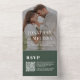Dark Green Simple and Minimalist Overlay Photo Script Wedding All-in-One Invitation with scannable QR code RSVP online and wedding website.