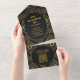 QR Code Diamond Black and Gold Art Deco Wedding All In One Invitation