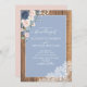 QR Code Dusty Blue Blush Rustic Wood Lace Wedding Invitation