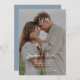 Dusty Blue Budget Elegant all in one Wedding invitation features complete wedding details and information including the wedding website, QR Code, photo overlaid with text, and a monogram or initials for the bride and groom.