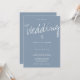 A wedding invitation with a casual, yet modern, typography design and a QR code for the RSVP. This dusty blue solid colour invitation accents the big event with the word Wedding in a large, handwriting-style, font. The rest of the invitation is in clean, open, typography that gives the design a strong structure. This invitation reflects the relaxed, yet well-organised, nature of your wedding. Ready to check invitations off your list? Simply add your information and QR code, add this invite to your cart, and have a great wedding.