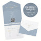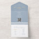 A modern and romantic dusty blue all-in-one wedding invitation featuring a minimalist gold rope heart and a detachable wedding program your guests can bring with them to the ceremony. Designed for couples who want a simple, elegant, and functional invitation that keeps everything beautifully organized.