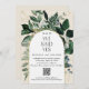 Modern , We said yes, Elegant Beige Botanical Greenery photo wedding Announcement with QR code. Recipients can scan the barcode that link to your wedding website that shows your photos and more.