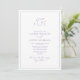 Your wedding sets the stage for a once-in-a-lifetime celebration, and it all starts with the perfect invitation. This Elegant Calligraphy Monogram Wedding Invitation exudes effortless elegance and timeless sophistication. Crafted with modern hand lettered calligraphy, this card takes on an artful look that is sure to please even the most discerning of your guests. The simple lavender and white design creates an effortlessly classy invitation that will help set a tone for your special day. But that’s not all - flip this beautiful card over and you’ll find a convenient QR code that can be scanned to take your wedding guests straight to your personalized website so they have access to all of their details in one area. This streamlined feature is great for keeping track of RSVPs as well as giving your guests easy-to-navigate information about your ceremony, reception location, photos and much more. Perfectly modern yet retaining tradition and style, this one-of-a-kind monogrammed wedding invitation will make sure yours is an event to remember! Contact designer for matching products. Copyright Anastasia Surridge for Elegant Invites, all rights reserved.