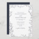 QR Code Elegant Minimal Leaf Navy Blue Wedding Invitation