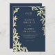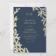 QR Code Elegant Navy Blue Gold Monogram Wedding Invitation