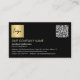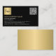 Simple modern classy upscale professional black business card fully personalised with your logo on a faux gold metallic square, with your QR code and business details. +++++++++ With a luxury elegant look, this card is suitable for business promotional and networking purposes.