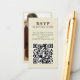 This simple wedding RSVP enclosure card, designed to coordinate with our "Elegant Autumnal floral wedding" collection, includes a personalizable QR code that leads your guests to your wedding website where they may RSVP online. Easily upload one of your best engagement photos on the back of the card to create a unique reply enclosure card.