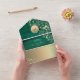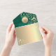 Elegant emerald green rustic barn wood all-in-one wedding invitation with gold floral artwork, romantic string lights, and personalized monogram. This invitation folds into its own envelope and features a convenient QR code for RSVP and your wedding website. The deep emerald wood background paired with glowing gold flowers and soft string lights creates a warm, elegant rustic look — perfect for barn, fall, or evening weddings. A beautiful blend of countryside charm and modern sophistication.