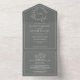 We're loving this trendy, modern eucalyptus green All-in-one Simple, elegant, and oh-so-pretty, it features a hand drawn leafy wreath encircling a modern wedding monogram. It is personalised in elegant typography, and accented with hand-lettered calligraphy. Finally, it is trimmed in a delicate frame. QR Code RSVP on back. Part of a matching wedding set. Veiw suite here: