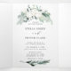 QR Code Evergreen & Cotton Flower Bouquet Wedding Tri-Fold Invitation