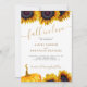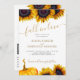 Modern yellow gold boho chic sunflowers and watercolor pumpkin Fall in Love budget affordable all in one wedding invitation with custom photo, scanning code to website and online rsvp featuring a trendy golden handwriting calligraphy script. +++++ Suitable for rustic modern summer garden or autumn fall outdoor backyard farmhouse weddings.