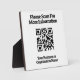 QR code on a countertop plaque to show to customers. QR code display at a reception desk for example.