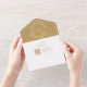 We're loving this trendy, modern gold All-in-one Simple, elegant, and oh-so-pretty, it features a hand drawn leafy wreath encircling a modern wedding monogram. It is personalised in elegant typography, and accented with hand-lettered calligraphy. Finally, it is trimmed in a delicate frame. QR Code RSVP on back. Part of a matching wedding set. Veiw suite here: