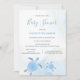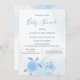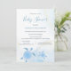 This cute baby shower invitation features blue metallic tribal turtles and sea shells on a blue and gold ink marble background. With a scannable qr code at the backside. It is easily changeable, just delete the example url and add the url of your gift registry site.