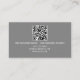 QR Code Grey Name Professional Logo Calling Card Business Card. Use the filter tool on the front and back of this business card for the special effect. Personalise this with your name, profession, the link for the QR code, and company information on the card. Edit it to Customise further. All my stores on Zazzle are found here https://bit.ly/SandyspiderStores