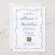 QR Code Hand Drawn Bright Blue Monogram Wedding Invitation