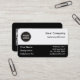Generic horizontal business card with custom logo and text fields. Custom background colour. Custom QR code and social IDs at the back.