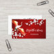 This Japan style business card features a crane and white cherry blossoms on a shimmering red background with custom name and profession in an elegant stylish script.