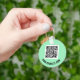 Custom QR code keychain. Custom background colour. Custom text on both sides.