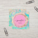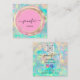 QR Code Logo Glitter Gold Drips Holograph Pink Square Business Card