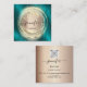 QR Code Logo Shop Blush Rose Gold Drips Teal Square Business Card